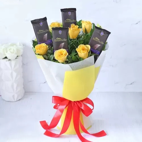 Bouquet of Yellow Roses with 4 Cadbury Bournville