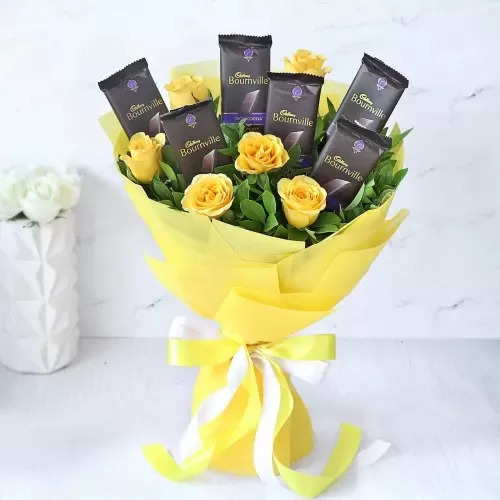 Bouquet of Yellow Roses with 6 Cadbury Bournville