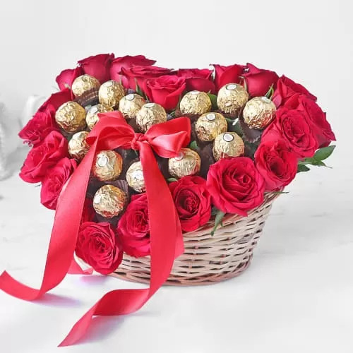 Heart Bouquet of Red Roses & Ferrero Rocher