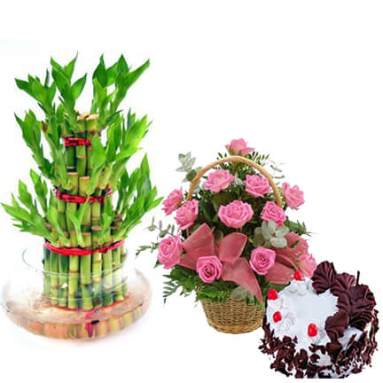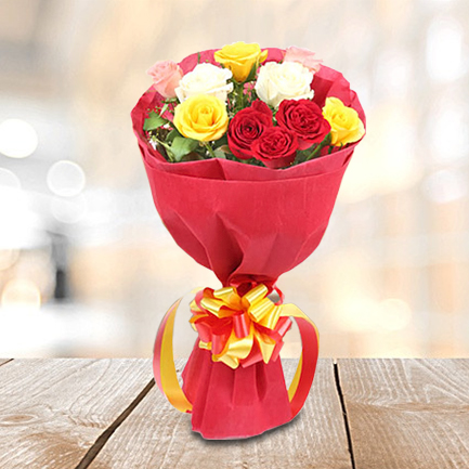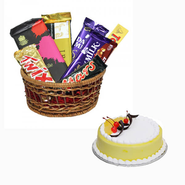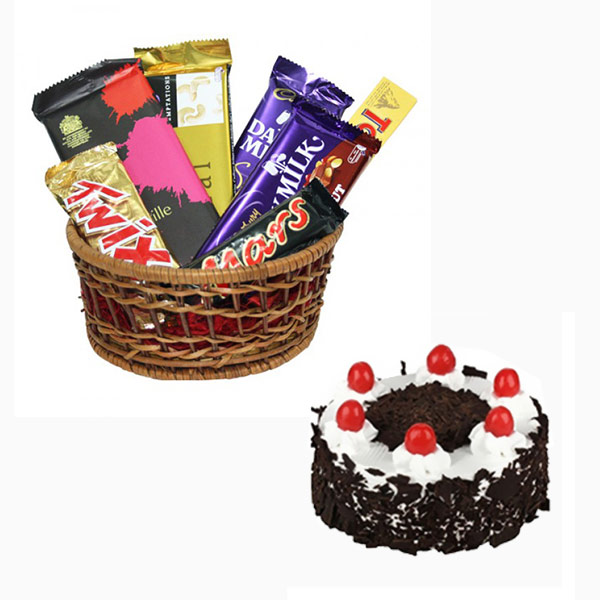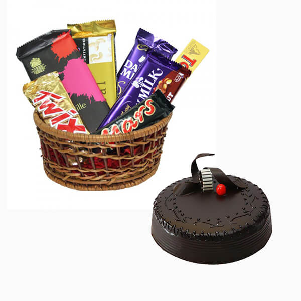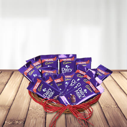 Basket of Mixed Roses with Dairy Milk Chocolates & Teddy