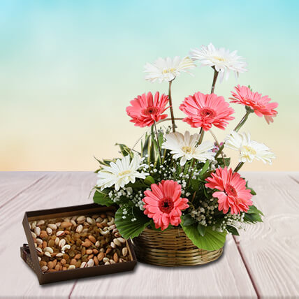 Fabulous Basket Arrangement Of Gerberas With Dry Fruits
